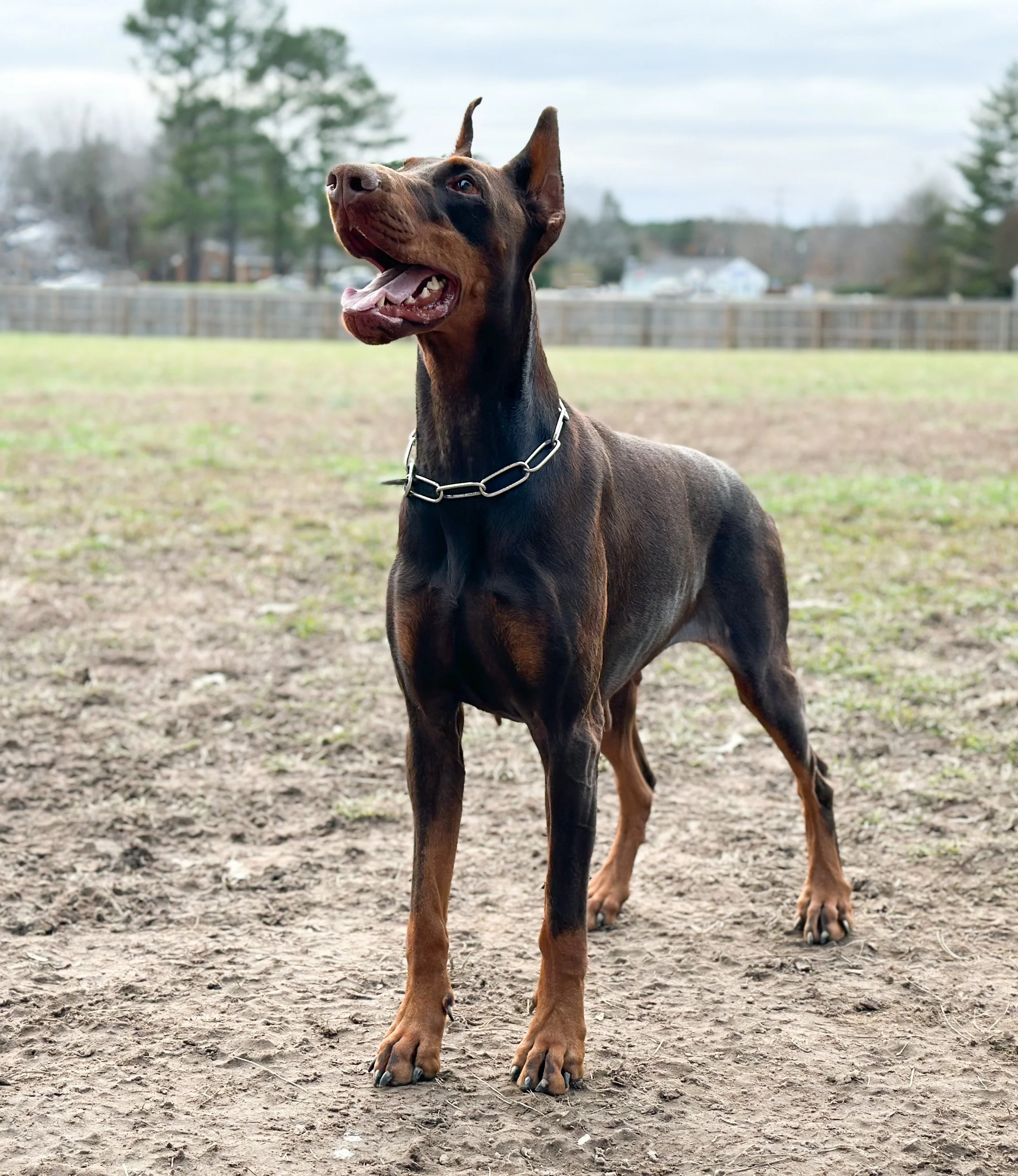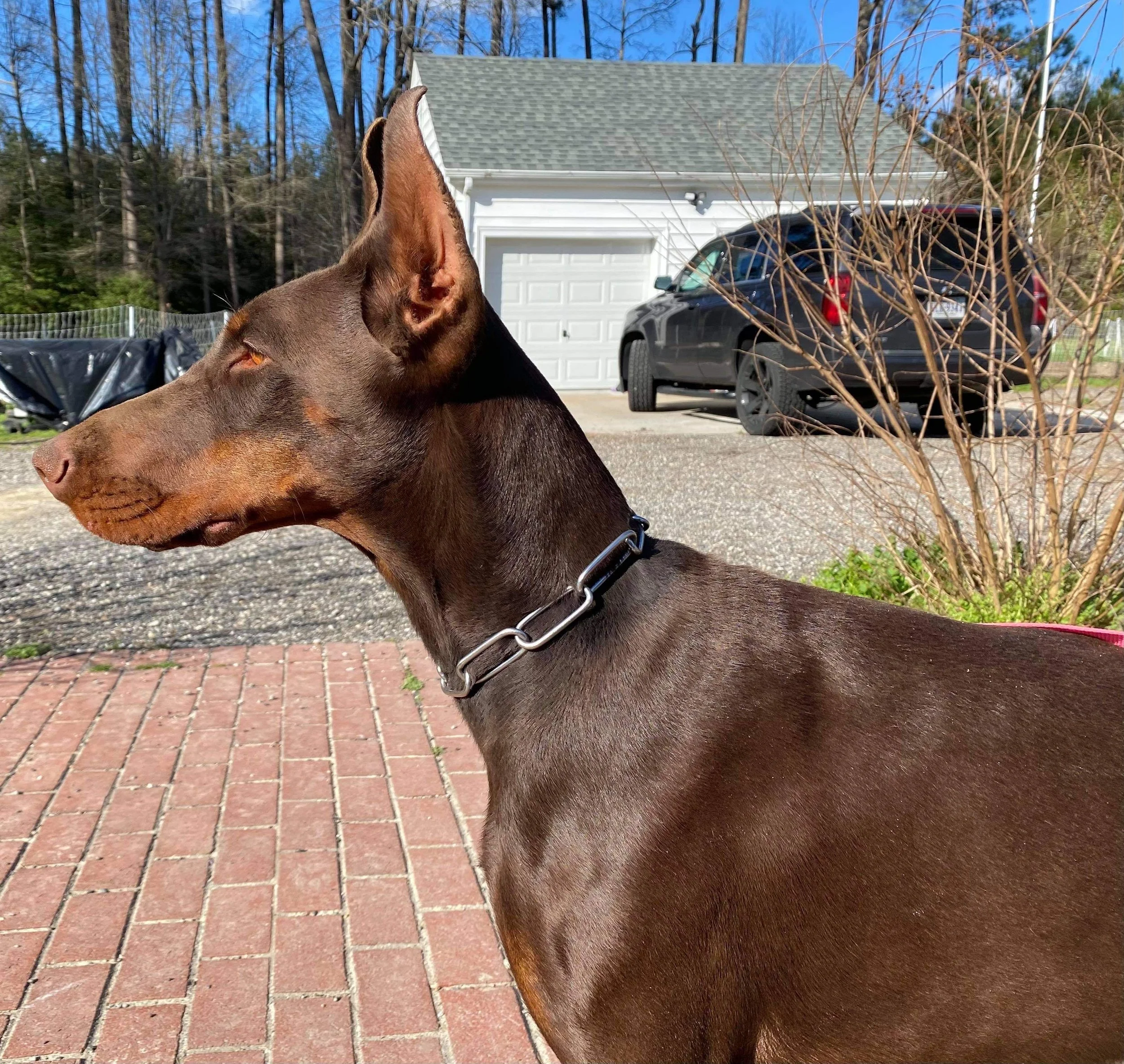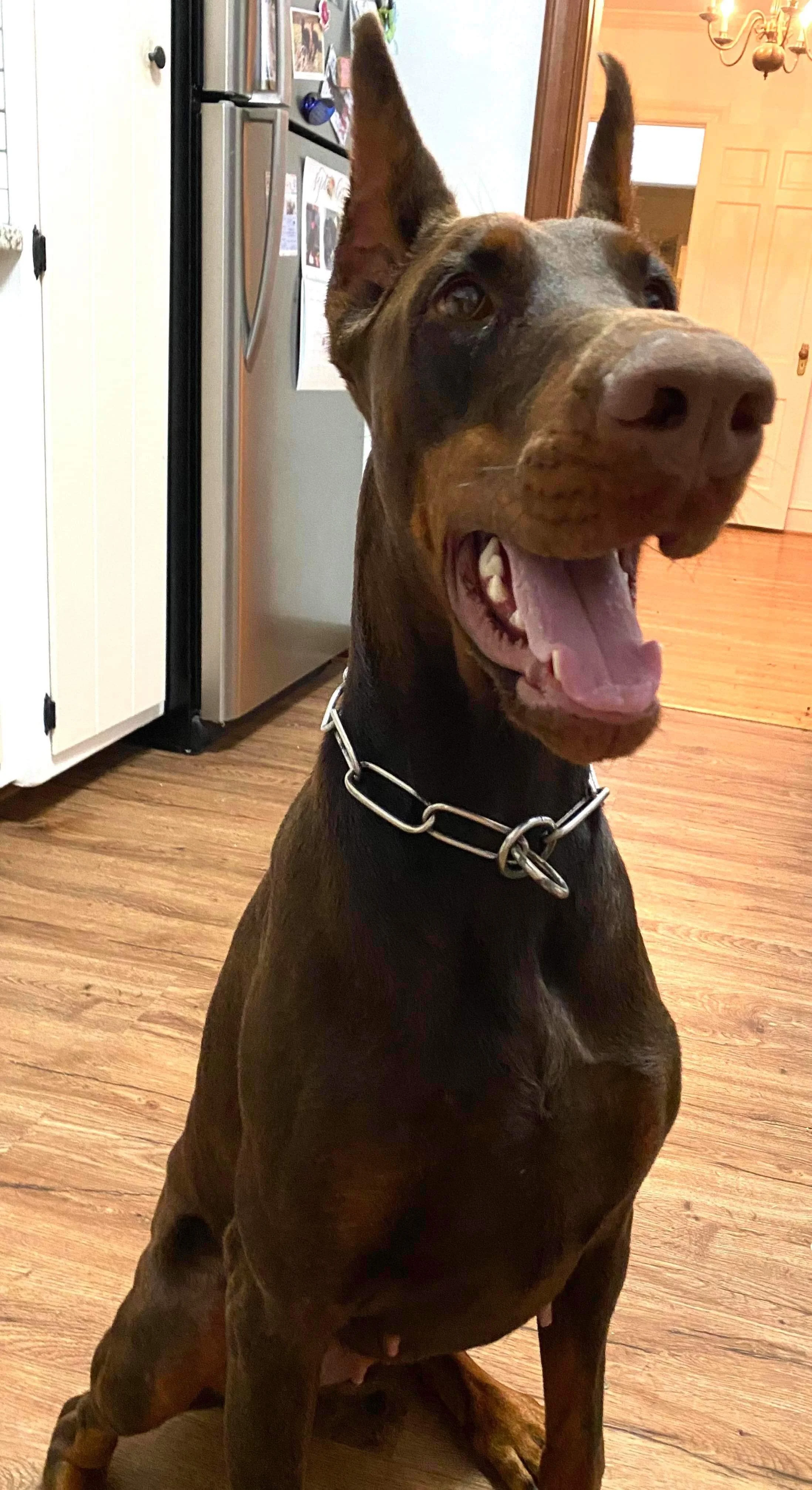 Amara is a lovely red female who came to us as a puppy from Serbia. She has grown into a beautiful adult with a personality to match it. She is as calm as a cucumber but a girl can only be so calm though once the ball or frisbee comes out! She is very in tune with me which makes training a breeze and the connection strong. Amara also has one amazing smile that will brighten any room.